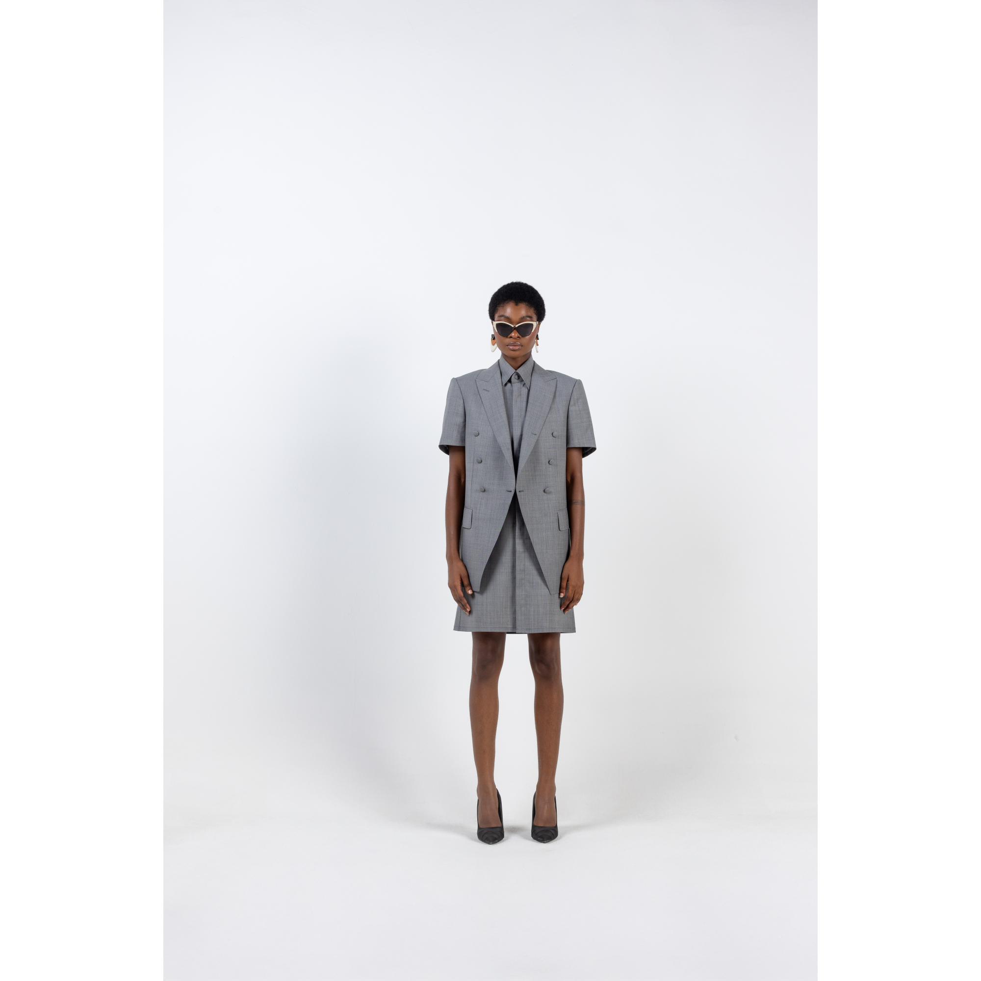 GREY SHORT SLEEVE JACKET WITH SHIRT DRESS