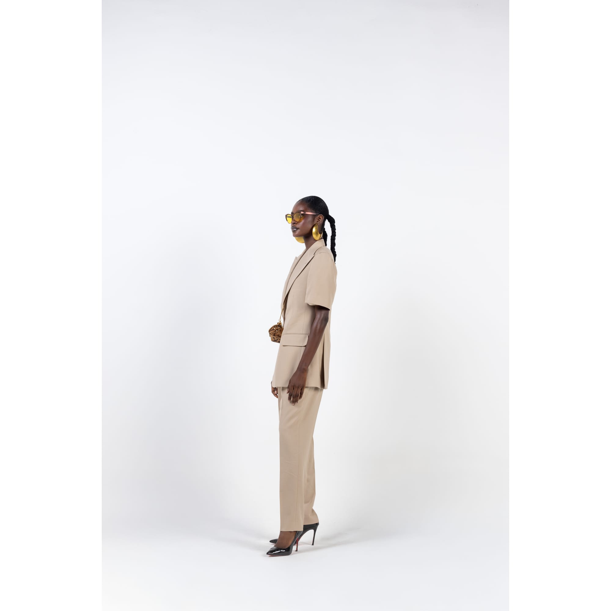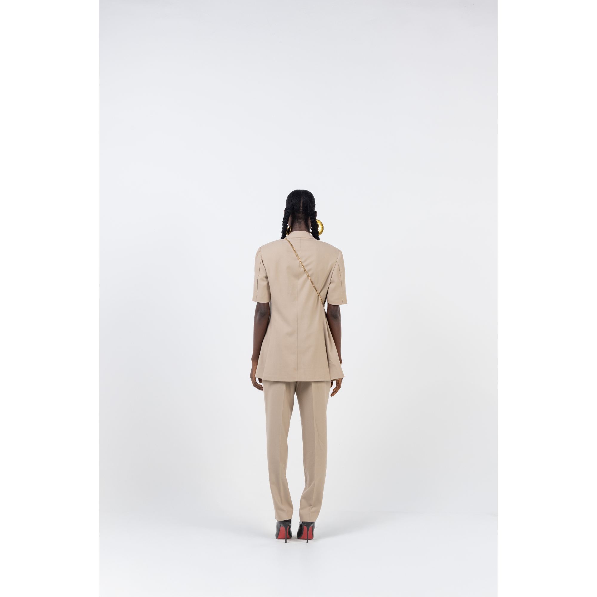 BEIGE SHORT SLEEVE TROUSER SUIT